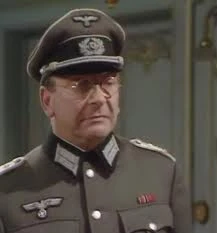 Whenever the Germans have to salute the Führer, Geering often heralds him by saying "-tler!", often misheard as "Klop!", instead of the full salute. (In a 2007 BBC special, Kelly says about his character that "Hans was just too lazy to say the whole sentence". The tler-klop misconception likely comes from the fact that it sounds ultimately like “Tlarp!”